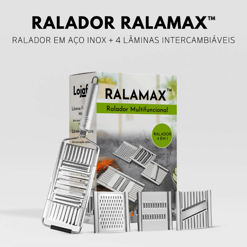 Transforme sua cozinha com o RalaMAX! Este ralador multiuso em aço inox é a solução definitiva para ralar, fatiar e triturar alimentos com praticidade e precisão..